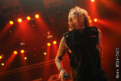Вокалист американской группы Fear Factory Бартон Белл во время выступления на концерте в клубе "Б1 Maximum"