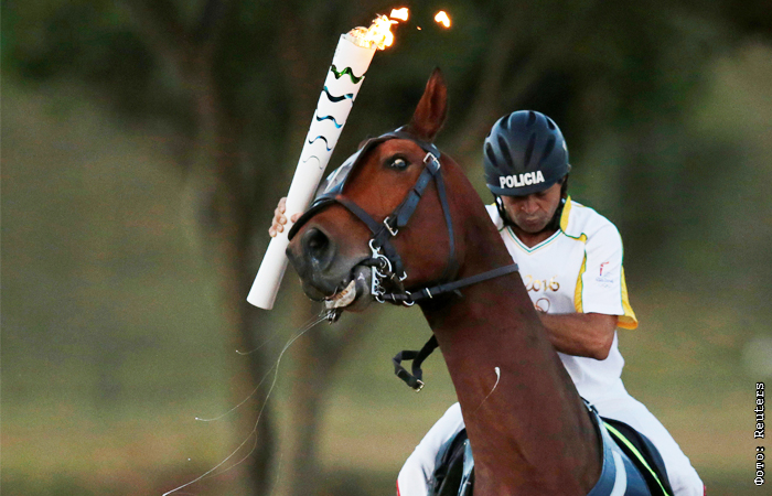 Участник этапа эстафеты в столице Бразилии провез факел верхом на лошади