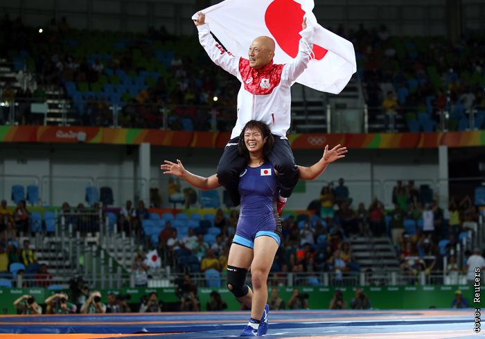Японская спортсменка Рисако Каваи выиграла золотую медаль Олимпийских игр в вольной борьбе в категории до 63 кг. Олимпийская чемпионка отметила победу, прокатив тренера на плечах и свалив его приемом с ног.