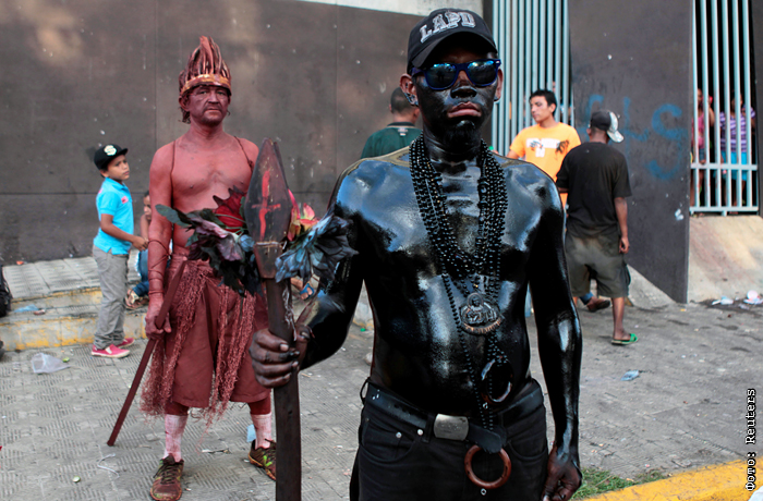 Жители столицы Никарагуа, выкрасившись красками и моторным маслом, чествовали покровителя города - Санто Доминго де Гусмана