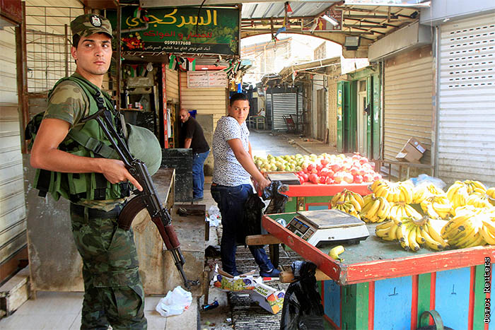 В Палестине молодежь опять бунтует. Солдаты охраняют порядок.