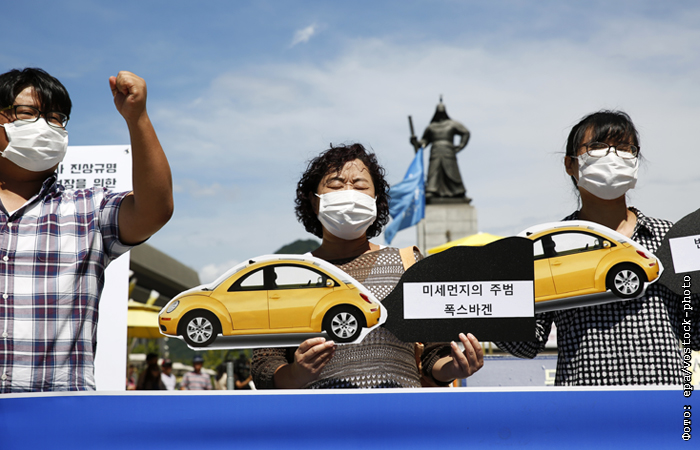 В Сеуле активисты экологических организаций провели акцию протеста против концерна Volkswagen и экологической политики правительства Южной Кореи. Концерн за последние десять лет продал в стране более 83 тыс. автомобилей Volkswagen, Audi и Bentley, предоставляя ложную информацию о выбросе вредных веществ.