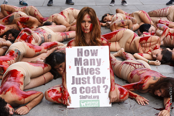 В Мадриде прошла акция протеста защитников животных против использования меха
