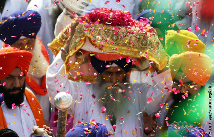 Сикхи со всего мира собрались в священном городе Амритсаре на севере Индии, чтобы отпраздновать 412-летие священной книги сикхов Гуру Грант Сахиб, которая считается источником духовной мудрости
