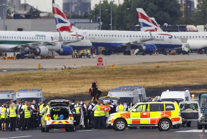 Активисты движения против насилия в отношении чернокожего населения Black Lives Matter устроили демонстрацию на взлетно-посадочной полосе аэропорта "Лондон-Сити". Пока администрация авиагавани и сотрудники полиции наводили порядок, все прибывающие рейсы были перенаправлены на другие аэродромы. Вылетающие рейсы были задержаны. Каким образом группа протестантов проникла на закрытую территорию неизвестно.