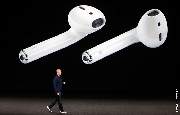 Apple также представила беспроводные наушники AirPods, которые смогут работать без подзарядки не более 5 часов. Наушники можно будет купить отдельно за $159.
