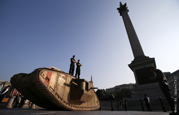 В Лондоне отметили 100-летний юбилей первого в истории танка, примененного в боевых действиях. Первая боевая машина Марк I была использована английским командованием 15 сентября 1916 года в ходе битвы на Сомме. Ромбовидная форма танка была обусловлена задачей преодоления широких траншей и проволочных заграждений. По итогам первых боев в производство были запущены усовершенствованные модификации танка. В честь юбилея на Трафальгарской площади установили точную копию танка Марк IV, участвовавшего в Первой мировой войне.