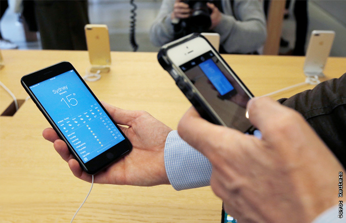 Покупатель фотографирует новый iPhone 7 в Сиднее