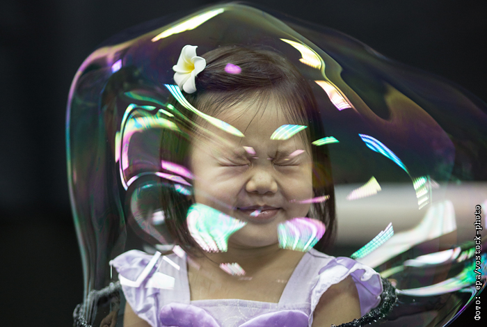 Во время шоу мыльных пузырей испанского иллюзиониста Пепа Боу в Гонконге