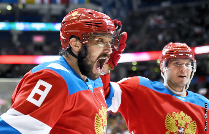 Капитан сборной России Александр Овечкин и нападающий Евгений Кузнецов