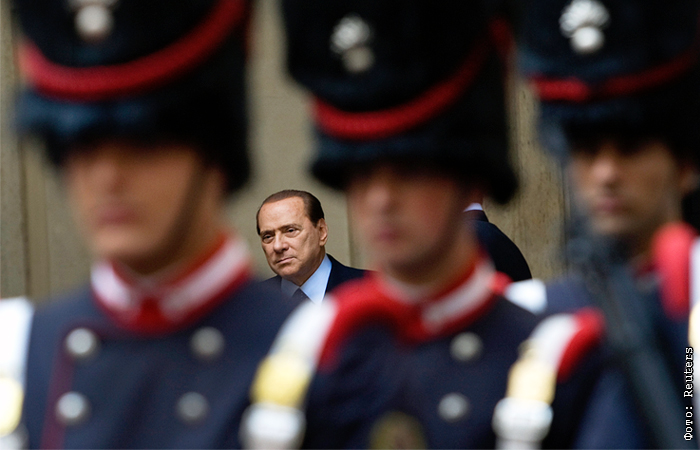 Берлускони в ожидании встречи с президентом Египта Хосни Мубараком у Палаццо Киджи в Риме. 2010 год.