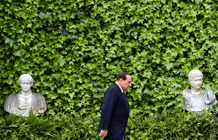Итальянский премьер совершает прогулку в резиденции Вилла Мадама в Риме. 2010 год.