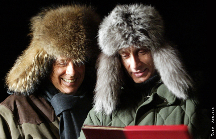 Сильвио Берлускони и президент России Владимир Путин в подмосковной резиденции Завидово. 2003 год.