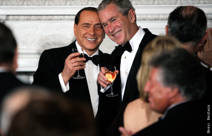 Сильвио Берлускони и президент США Джордж Буш в Вашингтоне. 2008 год.