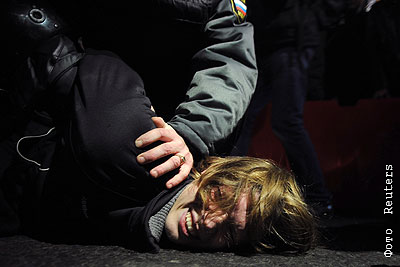 Задержание сотрудником милиции участника митинга оппозиции в защиту 31-статьи Конституции РФ на Триумфальной площади
