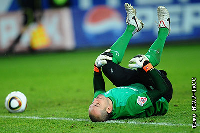 Игрок "Крыльев Советов" голкипер Эдуардо Лобос в матче чемпионата России по футболу: ЦСКА (Москва) – "Крылья Советов" (Самара)