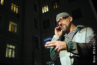 Художник Олег Кулик в спектакле "Олег Кулик. Игра на барабанах" в рамках документального проекта "Человек.doc" на сцене театра "Практика"