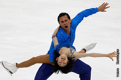 Российские фигуристы Александр Смирнов и Юко Кавагути, занявшие первое место, во время выступления с произвольной программой на пятом этапе Гран-при по фигурному катанию Cup of Russia