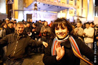 Участники долгосрочного митинга оппозиции с требованием отставки президента Михаила Саакашвили, приуроченного ко Дню национального единства, на одной из улиц города
