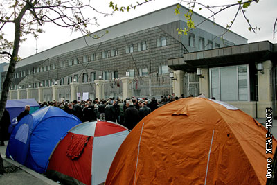Палаточный лагерь, который разбили участники бессрочной акции протеста оппозиции с требованием отставки президента Михаила Саакашвили