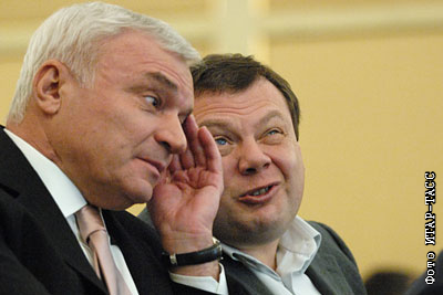 Председатель совета директоров ОАО "Магнитогорский металлургический комбинат" Виктор Рашников и председатель совета директоров "Альфа-групп" Михаил Фридман (слева направо) на Всероссийском форуме промышленников и предпринимателей в отеле "Ритц Карлтон"