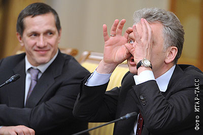 Министр природных ресурсов РФ Юрий Трутнев и министр промышленности и торговли РФ Виктор Христенко (слева направо) на заседании Правительства РФ