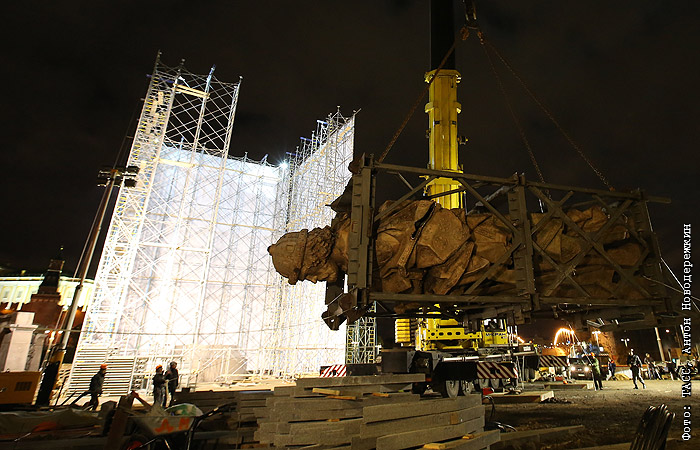 В ночь с 15 на 16 октября на Боровицкой площади российской столицы приступили к установке памятника князю Владимиру. Автор монумента - скульптор Салават Щербаков.