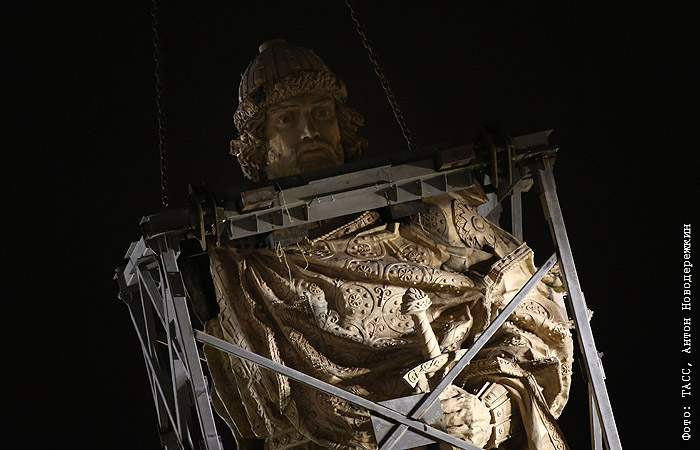 В ночь с 15 на 16 октября на Боровицкой площади российской столицы приступили к установке памятника князю Владимиру. Автор монумента - скульптор Салават Щербаков.