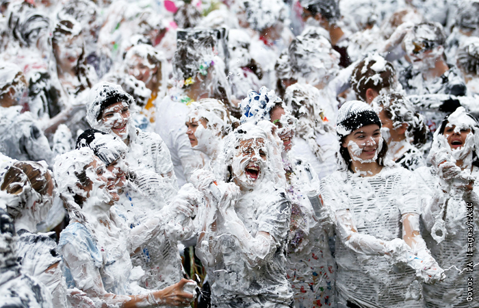 В Шотландии сотни первокурсников приняли участие в традиционном мероприятии посвящения студентов университета Сент-Эндрюс. Студенты устроили "пенные бои" на территории старейшего шотландского университета.