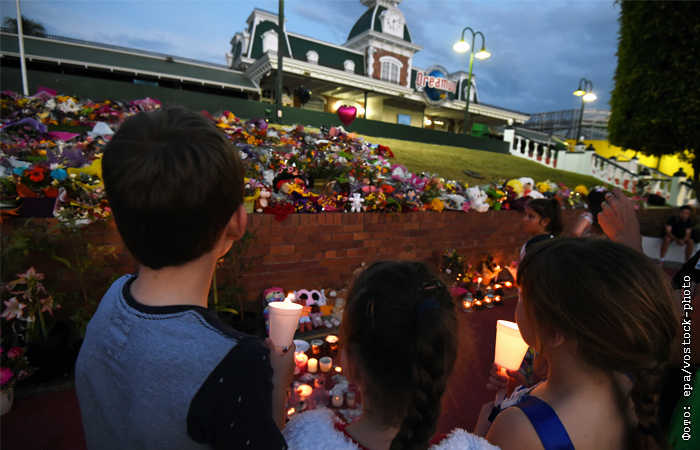 Жители австралийского города Голд-Коуст приносят цветы и свечи к импровизированному мемориалу у парка развлечений Dream World, где 25 октября в результате несчастного случая погибли четыре человека. Трагедия произошла на аттракционе River rapids ride, который представляет собой скоростной спуск по воде на круглых плотах. Один из плотов перевернулся, в результате чего погибли двое мужчин и две девушки.