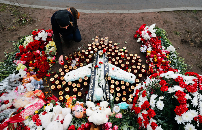 В России вспоминают жертв крушения пассажирского самолета авиакомпании "Когалымавиа", разбившегося над Синайским полуостровом. Лайнер А321, летевший из Египта в Санкт-Петербург, разбился утром 31 октября. На борту воздушного судна находились 224 человека, в том числе 217 пассажиров, все они погибли. В ФСБ заявили, что причиной катастрофы стала бомба, которую террористы заложили на борту.
