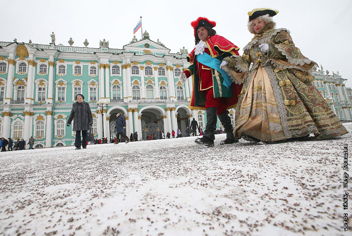 Дворцовую площадь в Санкт-Петербурге впервые обработали гранитной крошкой против гололеда