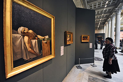 Работа художника Жака Луи Давида (мастерская) "Смерть Марата" представлена на выставке "Лики истории в европейском искусстве XIX века" в ГМИИ им. А.С.Пушкина
