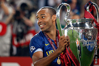 Тьери Анри держит Кубок Лиги чемпионов. Со счетом 2:0 победу в главном матче европейского сезона 2008-2009 одержала испанская команда, ставшая обладателем Кубка Лиги чемпионов