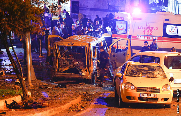 Вечером 10 декабря в Стамбуле прогремели два мощных взрыва. Взрывные устройства были приведены в действие у стадиона "Бешикташ", где одноименная футбольная команда в этот момент проводила футбольный матч с командой "Бурсаспор". Один из взрывов мог совершить смертник. По данным местных СМИ, заминированный автомобиль протаранил полицейский автобус. Погибли 38 человек, более 150 пострадали.