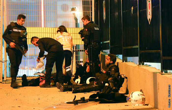 Вечером 10 декабря в Стамбуле прогремели два мощных взрыва. Взрывные устройства были приведены в действие у стадиона "Бешикташ", где одноименная футбольная команда в этот момент проводила футбольный матч с командой "Бурсаспор". Один из взрывов мог совершить смертник. По данным местных СМИ, заминированный автомобиль протаранил полицейский автобус. Погибли 38 человек, более 150 пострадали.