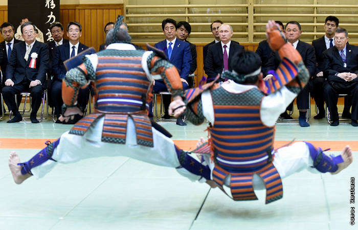 Президент России Владимир Путин в компании премьер-министра Японии Синдзо Абэ посетил центр единоборств "Кодокан" в Токио, где ему были продемонстрированы традиционные приемы дзюдо. Двухдневный визит российского лидера в Японию начался 15 декабря.