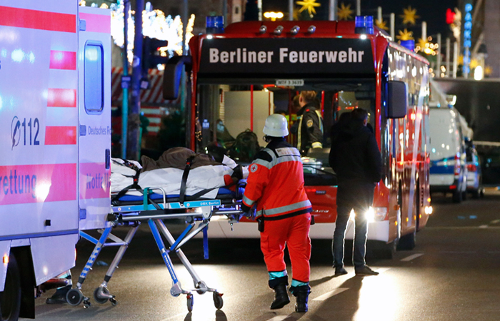 Вечером 19 декабря грузовой автомобиль с польскими регистрационными номерами въехал в толпу людей на рождественской ярмарке в Берлине. В кабине грузовика, который проехал по рынку 50-80 метров, находилось два человека. Один из них, находившийся на пассажирском месте, обнаружен мертвым. Второго подозреваемого удалось задержать недалеко от места происшествия. Жертвами наезда стали 12 человек, еще 48 получили ранения разной степени тяжести и находятся в больницах.