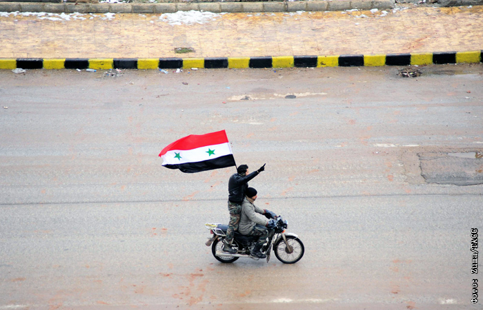 Солдаты сирийской армии празднуют освобождение Алеппо от боевиков. В четверг 22 декабря правительственные войска Сирии установили полный контроль над городом.