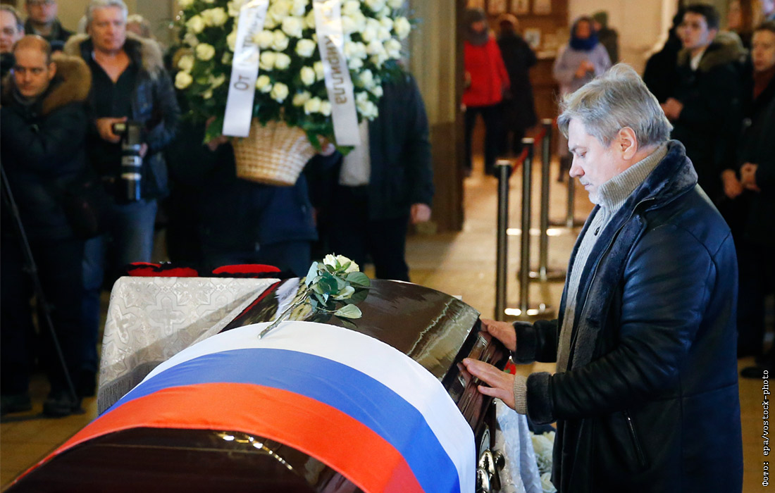 В Москве и Московской области прошло прощание с погибшими в авиакатастрофе над Черным морем. 25 декабря 2016 года самолет Минобороны РФ Ту-154 потерпел крушение вблизи Сочи. Катастрофа унесла жизни 92 человек. При крушении самолета погибли девять журналистов, артисты ансамбля песни и пляски имени Анатолия Александрова, включая руководителя коллектива Валерия Халилова, глава фонда "Справедливая помощь" Елизавета Глинка, а также сотрудники Минобороны России.