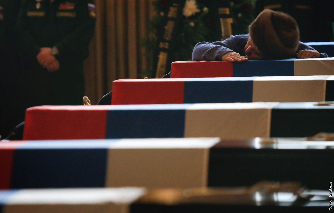 В Москве и Московской области прошло прощание с погибшими в авиакатастрофе над Черным морем. 25 декабря 2016 года самолет Минобороны РФ Ту-154 потерпел крушение вблизи Сочи. Катастрофа унесла жизни 92 человек. При крушении самолета погибли девять журналистов, артисты ансамбля песни и пляски имени Анатолия Александрова, включая руководителя коллектива Валерия Халилова, глава фонда "Справедливая помощь" Елизавета Глинка, а также сотрудники Минобороны России.
