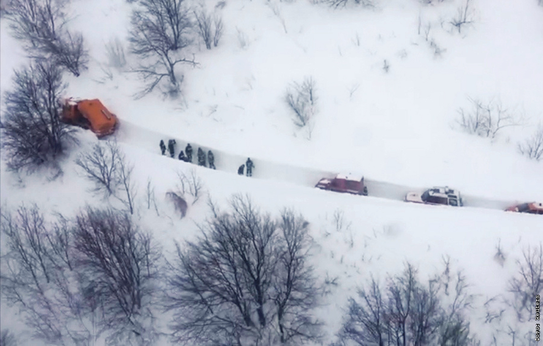 Вечером 18 января снежная лавина сошла на отель Rigopiano в районе горного массива Гран-Сассо-д'Италия. На место происшествия спасателям удалось добраться только к четырем часам утра по местному времени. В результате трагедии погибли 30 человек. Спасти удалось двух человек, которые в момент схода лавины находились возле гостиницы. Накануне утром в центральных регионах Италии (в том числе в Аппенинских горах) произошли пять подземных толчков, которые ощущались в Риме и других городах.