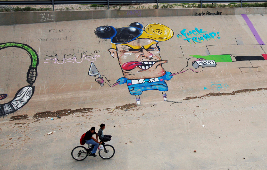 Карикатура на Дональда Трампа на стене в мексиканском Сьюдад-Хуаресе