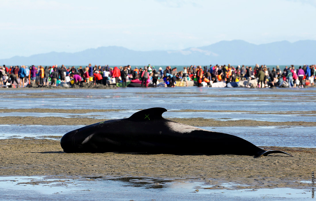 В Новой Зеландии 416 китов выбросились на берег Южного острова. Департамент охраны природы организовал спасательную операцию, но животных было так много, что потребовалась помощь местных жителей. Люди несли на пляж ведра, полотенца и простыни, чтобы охлаждать и увлажнять тела китов. Однако не менее трехсот из них погибли. Этот случай стал самым масштабным "массовым самоубийством" млекопитающих за последние десятилетия.
