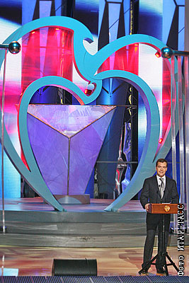 Президент РФ Дмитрий Медведев во время выступления в Московском театре оперетты на торжественной церемонии вручения национальной премии "Призвание" для лучших врачей России