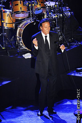 Испанский певец Хулио Иглесиас во время выступления на концерте в Государственном Кремлевском дворце