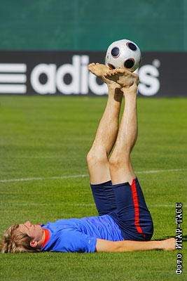 Игрок сборной России Роман Павлюченко на тренировке команды перед четвертьфинальным матчем чемпионата Европы 2008