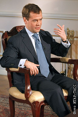 Президент России Дмитрий Медведев во время интервью корреспондентам агентства "Рейтер" в Кремле