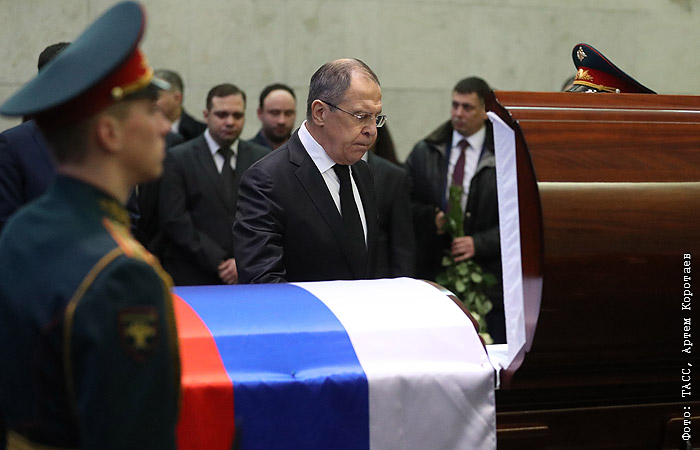 Министр иностранных дел России Сергей Лавров (в центре) на церемонии прощания