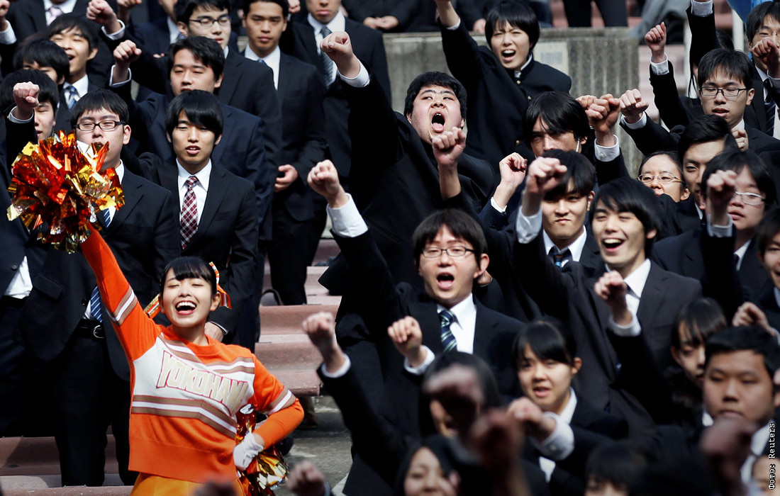 В Токио более тысячи выпускников японских вузов радостными криками и песнями встретили начавшийся в Японии ежегодный сезон поиска работы